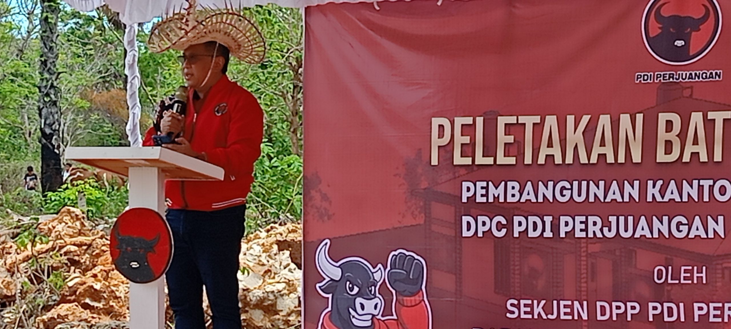 Sekjen PDI Perjuangan Hasto Kristiyanto Lakukan Peletakan Batu Pertama Pembangunan Kantor DPC PDI Perjuangan Rote Ndao