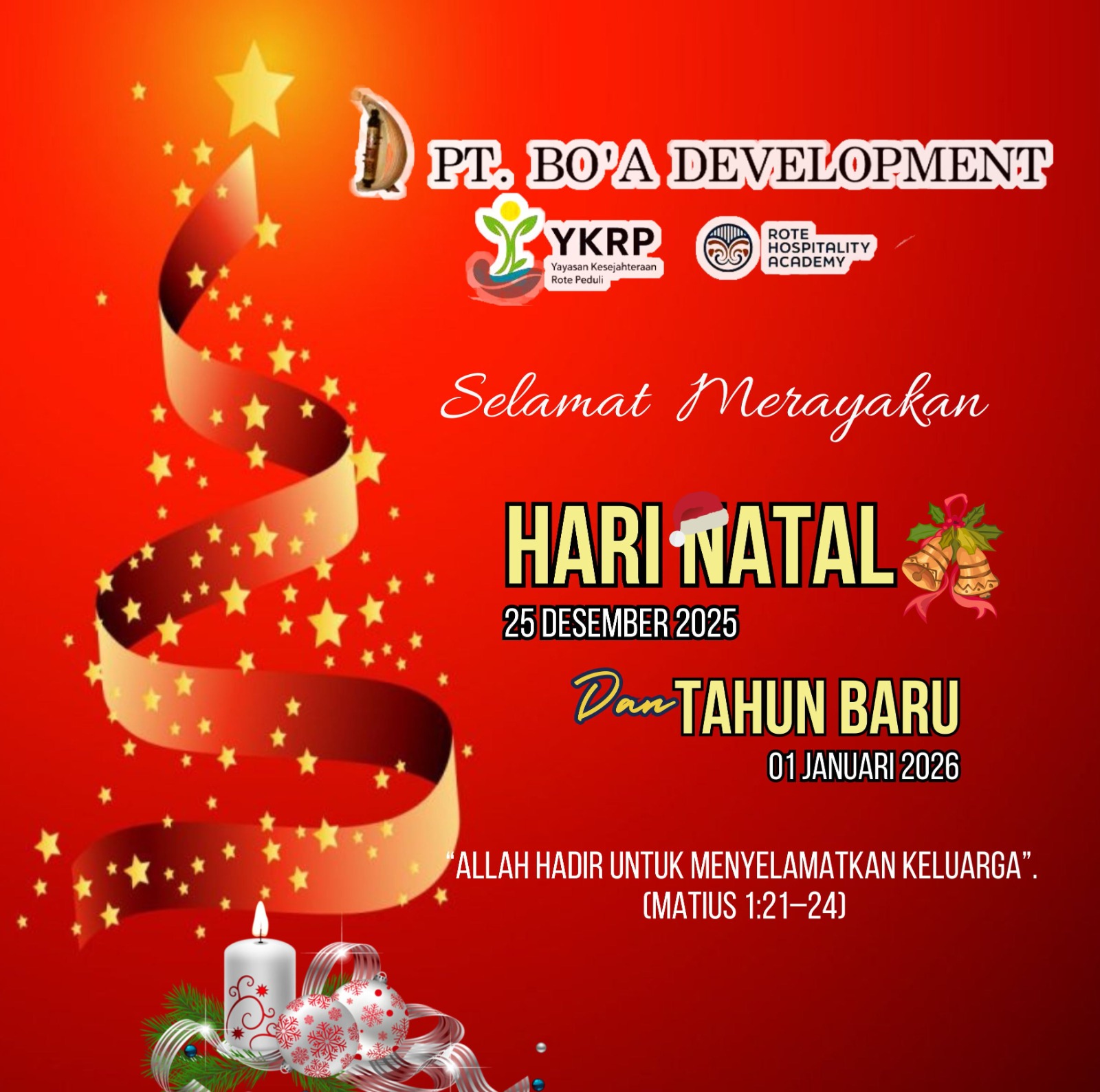 Rote Ndao-SuaraNkri.Com-Dalam Suasana penuh sukacita dan harapan, keluarga besar PT.Bo,a Development Rote Ndao mengucapkan selamat Natal dan Tahun Baru kepada seluruh masyarakat kabupaten Rote Ndao.