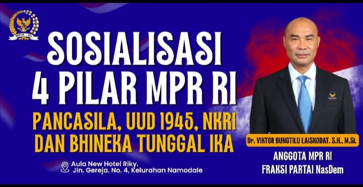 Rote Ndao- SUARANKRI.COM- Anggota MPR RI dari fraksi NasDem, Viktor Bungtilu Laiskodat, menggelar Sosialisasi Empat Pilar Kebangsaan di Rote Ndao. Acara berlangsung di Aula Hotel New Ricky, Kota Ba’a, Jumat (26/9/2025).