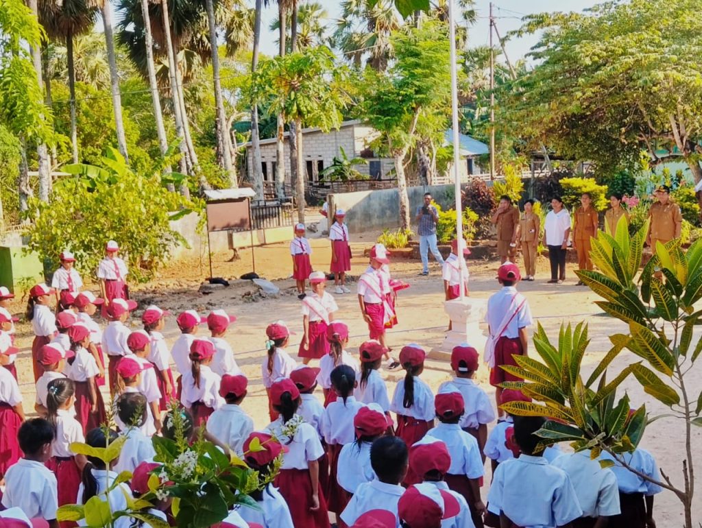 Aipda Semuel Bolla selaku inspektur upacara bendera Merah Putih, Mengucapkan terimakasih kepada pihak sekolah atas dukungan dan kerjasamanya dalam mendukung kegiatan program Barbar-School Polsek Rote Timur