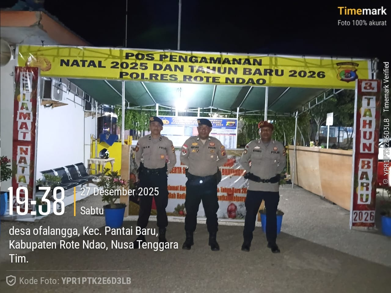 Rote Ndao-SuaraNkri.Com-Dalam rangka menciptakan situasi keamanan dan ketertiban masyarakat (Kamtibmas) yang aman, tertib, dan kondusif menjelang Perayaan Natal 2025 dan Tahun Baru 2026, Polsek Pantai Baru, Polres Rote Ndao, secara intensif mendirikan sebuah Pos Pengamanan yang berlokasi di pelabuhan ASDP Pantai Baru Desa Ofalangga, Kecamatan Pantai Baru dan koordinasi dengan pihak Perhubungan dalam hal ini Pihak ASDP Pantai Baru dan pihak puskesmas Olafulihaa untuk memberikan pelayan kesehatan bagi pengunjung maupun petugas jaga pada Pos Pengamanan tersebut