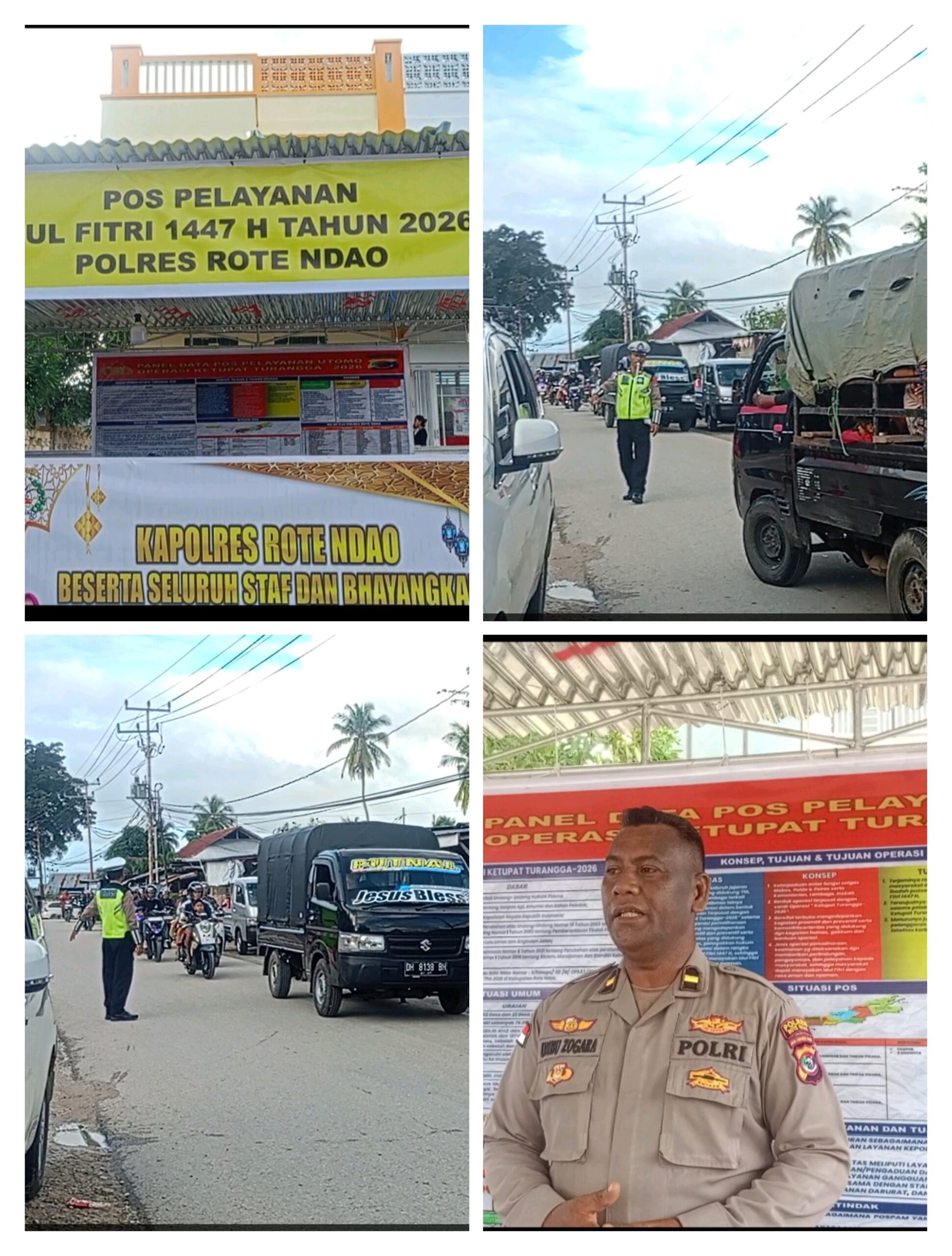 Rote Ndao – SuaraNKRI.com: Polres Rote Ndao menyiagakan Pos Pelayanan Siaga Idul Fitri 1447 Hijriah/2026 di wilayah Ba’a. Langkah ini dilakukan terpadu bagi pemudik, menyediakan tempat istirahat, pelayanan kesehatan, informasi jalur, hingga keamanan.