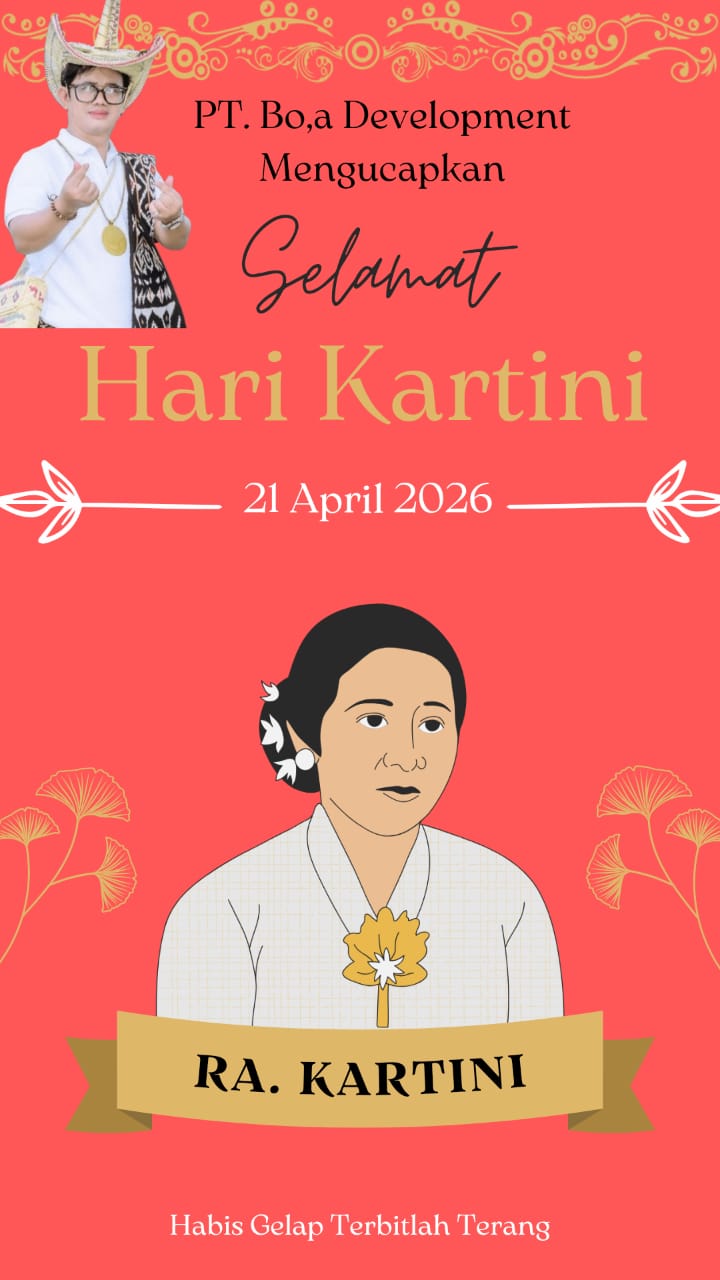 Keluarga besar PT.Bo,a Development] mengucapkan Selamat Hari Kartini. Mari teruskan semangat juang R.A. Kartini untuk mewujudkan perempuan Indonesia yang cerdas, mandiri, dan berdaya saing global. Habis gelap terbitlah terang!”